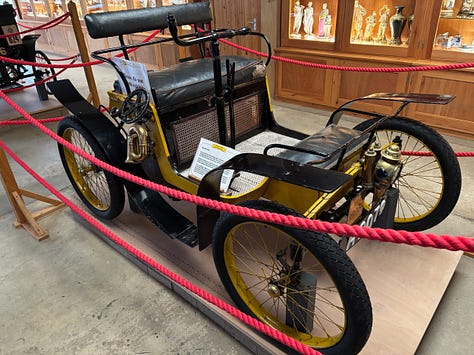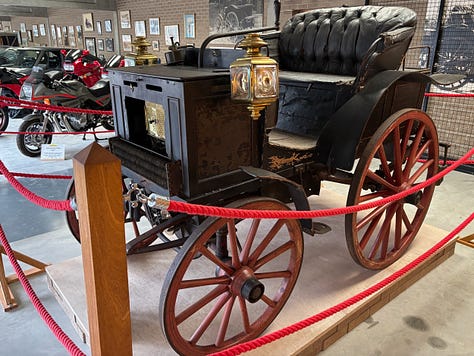 Seeing an electric car from as early as 1903 was a surprise! (I later found out the first electric cars were developed even earlier, in the 1800s.) It was also interesting to see some steam-powered cars.