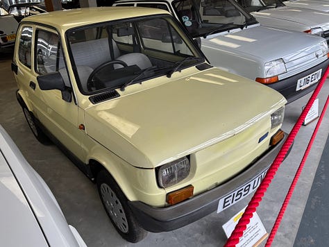 These cars are much more familiar. My sister’s first car was a Mini 850. I’ve owned and driven several Ford Fiestas and two Escorts. And my first car was a Fiat 126. (See my Car Memories series.)