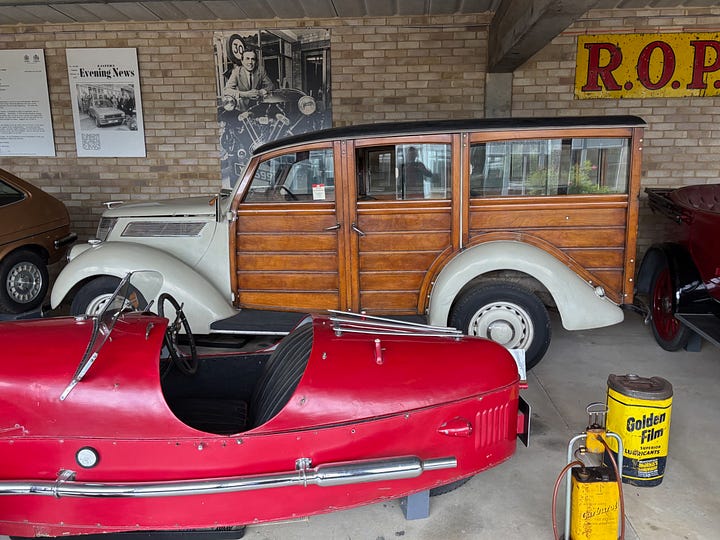 Ford Woodie Wagon, possibly 1937 — I didn’t note the year (behind a Morgan Super Aero Sports Three Wheeler)