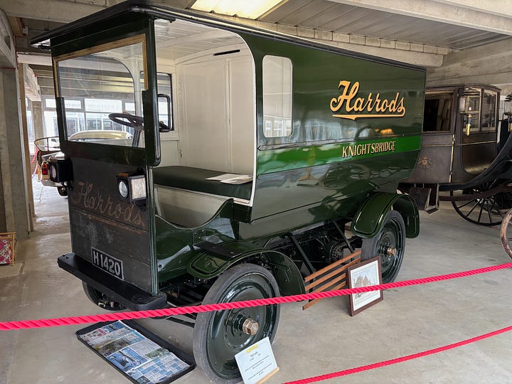 I was surprised to see the Harrods electric van, which dates back over 100 years!